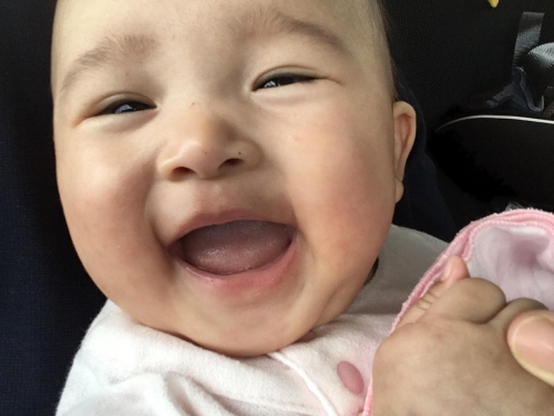 あやすと満面の笑みで笑い返してくれるようになったのでわ毎日みんなで笑かすの必死!(≧∇≦)可愛い笑顔のシャッターチャンス、いっぱいくれるようになったよ!これからもみんなを癒してね!