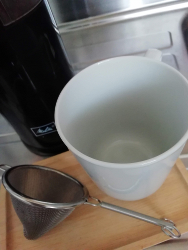 毎朝大きいマグカップに円錐形茶こしで、たっぷりのコーヒーを淹れて飲むのが至福の時です