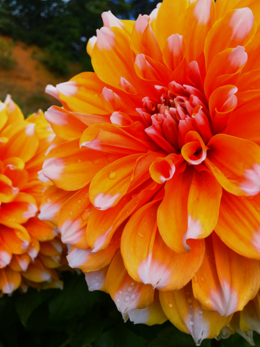 雨のあとの雫と一緒にダリアを撮りました 雨のあとではないと撮れない写真で気に入っています チョコレートの包装紙の可愛さに惹かれて撮った写真です