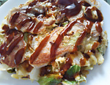「プレミ本舗」の「まるごとキューブだし」でお好み焼きを作