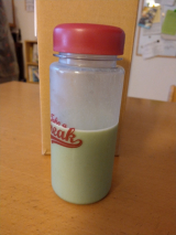 写真のような容器に飲むヨーグルトを入れて、職場でドクターベジフル青汁をシャカシャカと溶かして飲みます