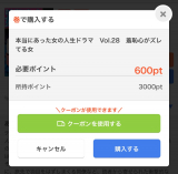 こんばんは"https//stat100amebajp/blog/ucs/img/char/char3/012png" alt="ニヤリ" width="24" height="24">子供が寝てから漫画を読む時間幸せ このサイトを使ってみたのでレビューします今新規登録すると半額クーポン貰えるらしい早速無料の新規登録してみたLINEで登録出来るし簡単だったよ無料の試し読みができるから安心まずは試し読みして面白そうな漫画を探す!!ちなみに私はこうゆうドロドロ系の漫画大好き(笑)試し読みしてから購入ボタンをポチッとこの画面が出てきたら会員登録の時に貰ったクーポンを使用してみた(笑)半額やから600円が300円に嬉しい\(^^)/読むのボタンが出てくるので押して〜Webかアプリが選べて〜右スライドで読み始めれます♪♪色んなサイト使ってきたけど種類も豊富でクーポンなども仕えるしなにしろ登録が簡単ここがありがたい(笑)サイト行って3分あれば読み始めれました気になった方はよければ半額クーポン貰える機会に試して見てください♪ここをポチっと押せば飛べますよ〜 少女漫画や少年漫画色々あったのでオススメですそんな感じで次の記事はGuamday2でも書きますねおやすみなさーい まんが王国ファンサイト参加中 続きを見る ['close']