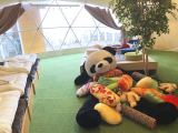 またしてもお久しぶりの投稿 結婚して1年8ヶ月経ってやっと新婚旅行兼グランピングしてきたお話 冬なのにグランピング?なんて思う方もいるでしょうわたしも思ってました でも今回は何と冬でもあったかく楽しめるグランピングなのですふふふ プランは「秋冬名物である地グルメ薪グランピングプラン農園と自然の香り」で、夜のBBQでは薪ストーブで暖を取りながら調理できるというもの 初日 大阪から車で2時間半でたどり着いたのがファームグランピング京都天橋立さん 泊まるのはこんなドーム型のお部屋 左にあるのがお風呂とトイレ わたしはブーツで行っちゃったからお部屋からトイレ行くのめんどくさかった…… クロックスとかサンダルとか持っていけばよかったなあと後悔 ちなみにサプライズドームっていう最大12人泊まれるお部屋だったの めちゃくちゃデカいパンダさんがお出迎えしてくれたよ! 自分では絶対買わないようなかわいいクッションとかいっぱいで一気にテンション上がった!! 今風に言うとバイブスブチ上げ(今風に言う必要あったのか) エアコンも2台ついてるので全く寒くない!何なら家よりあったかい!しあわせ! ちょっとお部屋でのんびりしてからピザ&ポップコーン作り体験 季節によって変わるみたいだけど体験コースは色々あって、その中から1組1時間の持ち時間の中から選べちゃう 普段家では全く動かない旦那がピザを!!ピザを作ってくれたの!! 生地を伸ばして…… ピザソースを塗り塗り…… ベーコンなどをトッピング わたしは横で地味にポップコーンはじけさせてた (油入れてコーン入れて待つだけの地味な写真) 出来上がったのがこちら ポップコーンはのり塩にしたよ王道が一番 ピザほんとに美味しかった 誰かが作ってくれたものを食べるって久しぶりだったから余計美味しく感じた 体験が終わってから管理棟で写真タイム めちゃんこオシャレでこれはもう撮るしかなかった 1年ぶりぐらいのしっかりツーショット かわいいライトの下で旦那に頼んで撮ってもらった! ポージングがわからなさすぎておばちゃん立ちになりかけたあぶねぇ 夜はテント横のバーベキュー棟へ スタッフの方が食材全部持ってきてくれるから楽ちん♪ 薪グランピングプランの夕食内容 農園野菜のホイル焼き 地魚のわら焼き 燻製醤油、燻製塩をのせて 鶏の藁焼き 薪ごはん 薪ストーブピザ 薪ローストビーフ 薪焼きカレー じゃがバター 燻製アイス 飲み物はついてないから道中にあるスーパーにしがきさんで購入するのがオススメ 我が家もビールとチューハイとお茶を持ち込んだよ♪ 火起こしから焼くまで全部旦那にお任せ BBQ中は酔っぱらってたのと食べるの必死だったのとで全然写真撮れてない…… 撮れたのは飲んだくれて寝そうになってる旦那ぐらいかな 普段寒がりな旦那がこんなリラックスしてて……薪ストーブの偉大さがわかる わたしはわたしで暖房の温かい風が苦手だから、こうじんわりあっためてくれるのはありがたい BBQが終わってからはお風呂に入って寝る準備 アメニティとしてバスタオル、フェイスタオル、バスマット、部屋着、歯磨きセット、シャンプー、コンディショナー、ボディソープ、ナチュラルベビーソープは完備 パジャマは柔らか生地で着心地も◎ 何よりシャワーの水圧が最高だった勢いあるシャワー大好き! 「一人で寝れるー!うれしいー!」と言いながらベッドにダイブする旦那 普段シングルの布団に2人&ワンコ5頭と寝てるもんな……そりゃうれしいよな…… ドームの中にはミラーボールが設置されていて、起動させると一気にパリピ空間に https//darayomecom/wpcontent/uploads/2019/12/0f8c8a11043747c4bc5504e4332c6c7b1mp4 ( ՞ਊ ՞)ウェーイ 旦那は運転で疲れてしまって早々に就寝わたしも22時ぐらいにおやすみー 年寄りは寝るのが早いのだ 2日目 朝ごはんはベーグルサンドサラダヨーグルト おしゃんてぃ!! (この後スカートにマヨネーズこぼして普通にヘコんだ) 1000ギリギリにチェックアウトして大阪へ 観光でもしようかって話はしてたけど、雨だったしワンコも心配だったしってことで寄り道ナシ 大阪に近づくにつれて車が増えていくし信号も増えていくし、現実へおかえりなさーい!って感じがすごい 「ワンたち大喜びするかな」って言いながら帰宅したけど、喜びようは普段と変わらなかったちょっと悲しい さいごに もうめちゃくちゃ楽しかった 非日常空間で非日常体験、最高 行く前は「寒いの嫌やな」とか言ってた旦那も2日目の朝には「帰りたくない……」ってボヤいてたもん ぼけっと薪ストーブの火を見ながら2人でまったりしたのもいい思い出 家だとどうしてもテレビ見たりスマホ触ったりしちゃうから、そういうのから離れて生活するのもいいモンだなあって思った 次はワンコ連れていきたいなあ ペット同伴で行けるグランピング施設もあるみたいだし、ちょっと色々練ってみようかな こんな感じで幸せ新婚旅行でした!うふふ マリントピアリゾートファンサイト参加中 続きを見