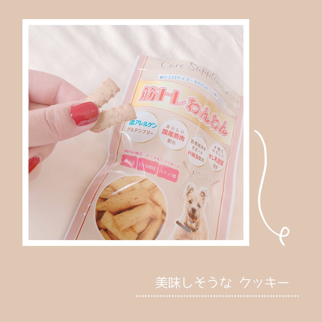 ༝ ༝ ༝ ✧ ▹ 筋トレわんわん HMB含有ケアサプリメント ✩ _______________ ︴おいしい(北海道産鹿肉使用) ︴筋肉ケア(TSI社製HMB配合/業界初) ︴機能性素材配合 ︴やわらかい ︴動物病院専用商品 ______ ______________ 7歳になった愛犬達は 室内飼いだし、運動量も少ない気がするので 筋力が落ちたり、筋肉量の低下が心配 🥲: そこで、筋トレわんわん 試して見ました ✩.*˚ おやつ感覚のクッキーで 、 みんな、すごい食いつき ! 𓍱𓍱𓍱 すごく食べやすいと思います 。 欲しがるけど・・・量は、しっかり守ってあげるよ ! やっぱりいつまでも元気でいて欲しい ˎˊ˗ 出来るケアを続けていきたいです ☆彡.。 ༝ ༝ ༝ #筋トレわんわん #犬用HMBサプリ #犬用筋肉ケア #犬の健康寿命 #犬用機能性おやつ #兼松ウェルネス #monipla #meneki_fan #懸賞好きさんと繋がりたい #暮らしを楽しむ #日常垢さんと繋がりたい