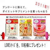 株式会社メタボリック様が、食べちゃうワタシのダイエットサプリ『LOVEシリーズ』のモニターを募集されています〓〓3分間で終了!アンケートに答えて、ダイエットサプリメントを貰っちゃおう! 2011/01/07