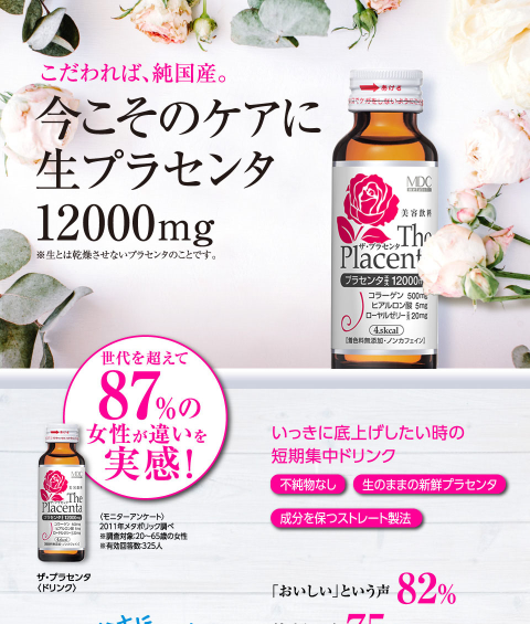 ■純国産100%のプラセンタエキスをたっぷり12000mg配合しています。