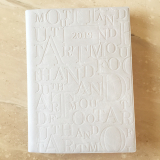 表紙は肌ざわりの良い材質に、文字(MOUTH AND FOOT ART)を空押しに。高級感のあるおしゃれなデザイン。