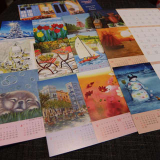 デスクカレンダー2020【落ち着いた絵画で構成された】 / 落ち着いた絵で構成された機能的なデザインのビジネスモデル。 / 前面が開いたケースで、広くとった余白に予定が書き込めて実用的。 / 六曜、二十四節気、前後月のカレンダー入りで便利です。 / ● 卓上型カレンダー / ● サイズ:10.1×17.5㎝ / ● 表紙と各月12枚、プラスチックケース入り / ● 表紙の裏に、2020年の年間カレンダー