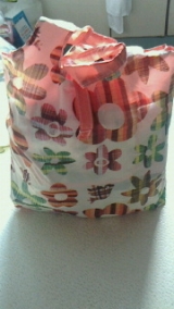 口で描いた花の絵に足で織ったさをり織りデザインのエコバックカラフルで元気が湧いてくるデザイン♥︎内ポケットも付いていて携帯とか鍵とか入れれて便利♥︎小さそうやけど入れるとめっちゃたっぷり入りますん 肩からもかけられますんこんなコンパクトになるので持ち運びにも便利♥︎袋もお金を取られる時代な… 2014/01/26