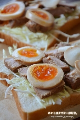 ふんふん♪余った前記事「ミカ姉さんのやわらか豚角煮」をサンドイッチにしようかとプレスフーガが食べやすいようにと、ビタントニオでホットサンドにしましたゴロッとパン好きなフーガは外側から食べ始めて、具は残すのかな?とおもいきや、キャベツも角煮も味玉も残さず食べてくれた旦那さんも具とパンがなじんで… 2015/01/27