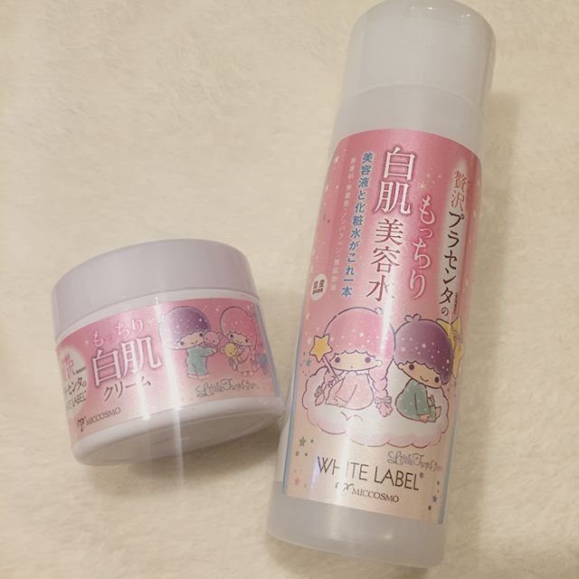 。 ☆贅沢プラセンタのもっちり白肌美容水☆ ☆贅沢プラセンタのもっちり白肌クリーム☆ 〈限定キキララコラボデザインボトル〉 ・ プラセンタで有名なミックコスモさんの 国産プラセンタを贅沢に配合した白肌美容水と白肌クリームのキキララとコラボした限定デザインボトルです🌟 ・ もともと、こちらの商品はピンクを基調としたデザインなのですが、キキララとのコラボでさらにかわいくなりました! パジャマを着たキキララがすごくかわいくて、スキンケアが楽しくなります💕 とてもかわいいので並べて置いて置くだけでも女子力が上がりそうです。 ・ ☆贅沢プラセンタのもっちり白肌美容水を 実際に使用した感想☆ ・ 白みがかっていてとろみのある化粧水ならぬ”美容水”です。 美容液成分も配合で美容液いらずの化粧水なので”美容水”とのこと。 ・ 実際に美容液を使わず、こちら塗ってすぐにクリームを塗ってももっちり潤いました。 1回塗りでも充分にもっちり吸い付く肌になります。 ・ とろみがある化粧水ですが、浸透がいいのでイヤなベタつきは感じませんでした。 重ねづけをしてもあまりベタつきませんでした。 ・ プラセンタ配合ですが、プラセンタ独特の匂いなどは感じませんでした。 ・ 個人的にこちらの美容水のボトルが衛生的かつ、 量の調節が容易でとても使いやすいと思いました。 ・ ☆贅沢プラセンタのもっちり白肌クリームを 実際に使用した感想☆ ・ クリームという名前ですが、ジェルのようなかなりみずみずしいテクスチャです。 ベタつきは少なく、肌をとても柔らかく、潤わせてもちもちにしてくれます。 特にライン使いすると手に吸い付く肌になるのがいいと思いました😊 ・ こちらも美容水同様にプラセンタ独特の匂いは感じませんでした。 ・ ☆まとめ☆ ・ スキンケアが楽しくなるかわいい見た目で もっちり吸い付く肌にしてくれるとても優秀なスキンケアです。 お値段もプチプラなのでコスパもいいと思います! ぜひチェックしてみてください💕 ・ #キキララ #monipla #ミックコスモファンサイト参加中