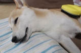 私の愛しい老猫、ミャオさん 頭、背中、アゴの下は普通にブラッシングさせてくれてもお腹は抵抗されて手を噛まれる事もしばしばあります 2014/09/15