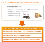ペットがうっとりする不思議なブラシ! 嫌がっていたブラッシングも不思議に喜び、気持ちよさそうな表情にビックリ!イオンの微風が心地良さを招き、更に消臭効果とつやつやな毛並みをぜひ体感下さい大事なペットとの毎日のコミュニケーションを楽しめますって事で家のミルク君ブラシングが嫌いなのでこれならOKかな… 2013/10/26