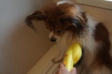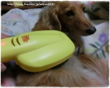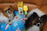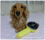 ピュアラブリーのモニターです♪ 今日は特別、、、金太郎&桃太郎のお友達のプリンちゃんのお家で撮影します(^_^) 昼からお出掛けする金太郎&桃太郎はとっても良い子で待ってます♪ これがピュアラブリーという黄色いブラシです ブラッシングの嫌いな子も大好きになるという魔法のコームです 本当か… 2013/11/08