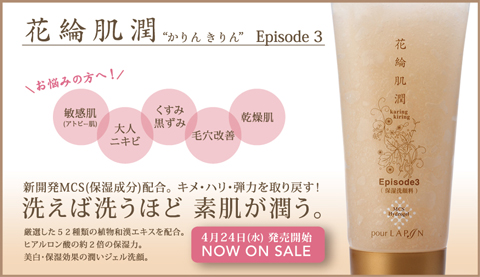 すべての女性に乾かない・枯れない洗顔を可能にした潤いジェル洗顔「花綸肌潤“かりんきりん”エピソード3」を発売いたしました。