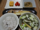 夜は、過日、リンコスさんにて半額となっていた甘鯛の開き干しの半身@170円などで、定食に 付け合わせは、薩摩産の本枯節入りの自家製玉子焼に、プチトマトと、下関産のもずく入りの雪誉に、 よこいさんの油揚げと、ぶなしめじと、木耳と、蒟蒻と、大根と、人参と、牛蒡と、玉葱と、長葱の豚汁 甘鯛の開き… 2012/11/26