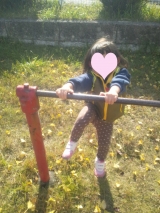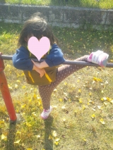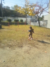 お気に入りの ★ミキハウス&ミズノ★シューズ をはいて 近くの公園へ 私の神経痛で遠くまでお散歩できないので 本当はもっと暴れまわりたいのだろうけどごめんねぇ 公園までの道のりでは 落ち葉を拾ったり、どんぐりを拾ったり 目的地へ到着したら… 2013/11/22