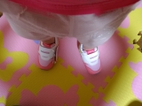 ミキハウスさんとミズノさんのコラボスニーカーは、カラフルで可愛いから目立ちますね!! 息子もお気に入りで、自ら履いてお外に出たがりますがまだ、ひとりじゃ履けません…自転車に乗っている息子も!ベビーカーに乗っている息子も! キックバイクに乗っている息子も!可愛いです♪♪♪素材はメッシュタイプみたい… 2013/06/09