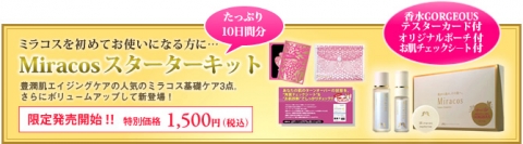 美容成分を10億分の一サイズにする「ナノ」を超える国際特許技術を応用した「イオン化ミネラル技術」によるエイジングケアシリーズ『Miracos』を発売しております。