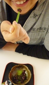 先日、長女の目がキラキラしちゃうある物が届きました^m^老舗のお茶屋さん、おさだ苑さんの「森の抹茶あずき」(^o^)おさだ苑本店ファンサイト参加中うちの長女はとにかく抹茶あずきが大好物なのです^m^ちょっと高級感ある金色と紫のパッケージを開けると、パックされたあずきと抹茶スティックが2本入って… 2013/11/10