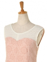 モニター商品:ピンク×ブルー×グリーン小さな幾何学柄ノースリーブワンピース!ピンクリボンがアクセント☆