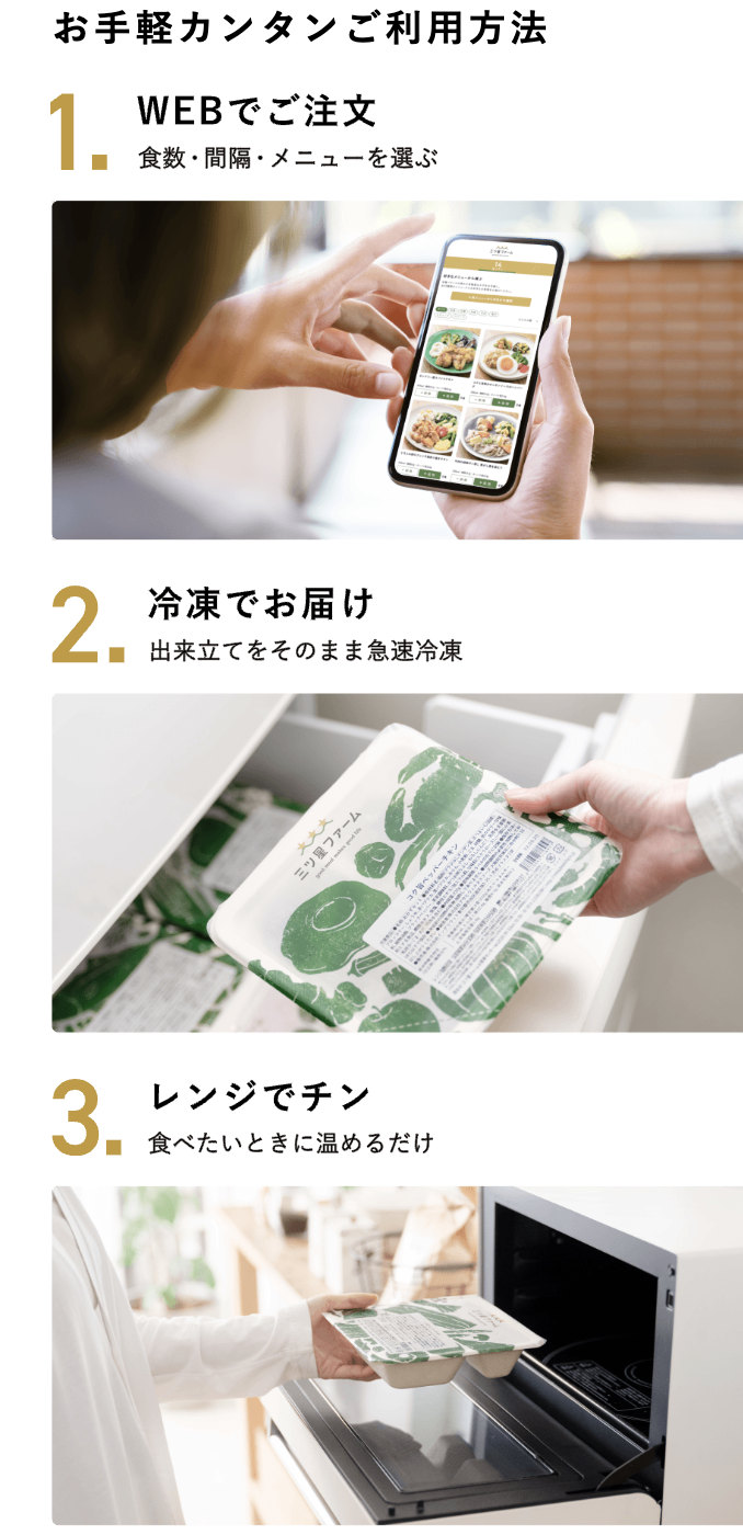 ※Instagramに投稿する際には #三ツ星ファーム #時短ごはん #宅配弁当 #monipla #mitsuboshifarm_fan のハッシュタグをつけて投稿してください!