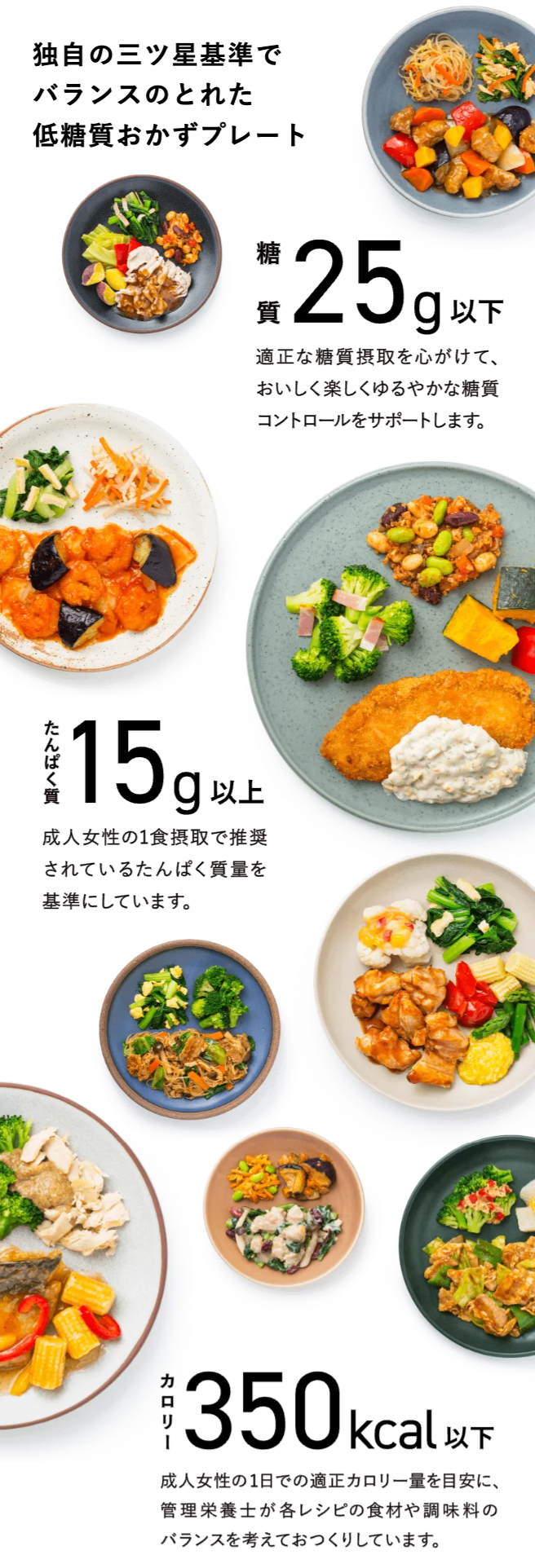 管理栄養士の監修と独自の三ツ星基準によって栄養バランスのとれた低糖質おかずをお手軽に。