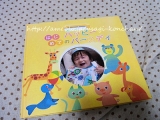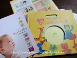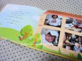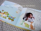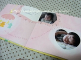 モニプラ さんよりモニタープレゼントで頂いた みつわ印刷株式会社 さんの アルバムブック(はじめてのハッピーバースディ) 赤ちゃんが誕生した日から、絵本のストーリーみたいになっていてお気に入りの写真を入れて、メッセージを書く仕組み 2011/04/02