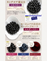 ブドウ種子油、ビルベリーエキス末、赤ワインポリフェノール、亜鉛含有ビール酵母、カシスエキス末、ゼラチン、グリセリン、ミツロウ、グリセリン脂肪酸エステル、マリーゴールド色素(ルテイン含有)、ビタミンE、ビタミンB2、ベータカロテン、ヘマトコッカス藻色素