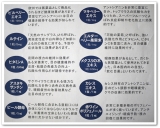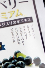 ブドウ種子油、ビルベリーエキス末、赤ワインポリフェノール、亜鉛含有ビール酵母、カシスエキス末、ゼラチン、グリセリン、ミツロウ、グリセリン脂肪酸エステル、マリーゴールド色素(ルテイン含有)、ビタミンE、ビタミンB2、ベータカロテン、ヘマトコッカス藻色素