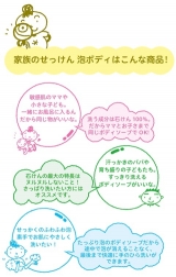 石けん泡のやさしい使い心地はそのままに、たっぷり泡とほのかな香り(フローラル)がうれしい、泡のボディソープ。「石けんの使用感が好きだけど香りも欲しい!」「パパにはさっぱり、子どもも安心して使えるボディソープは…」そんな方にオススメです。