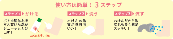 泡切れのよい石けん成分と飛び出すジェットの泡タイプだから、手軽に足を洗うことができます。