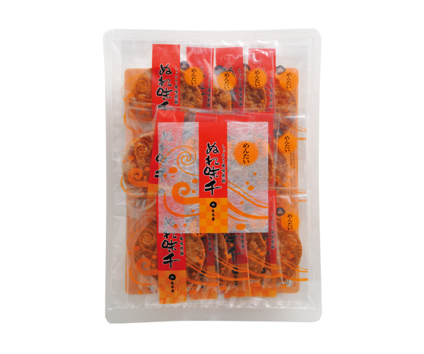 独特のしっとりとした食感に明太子を合わせて香ばしくしあげた程よい辛さの、少し小さめのぬれ味千です。