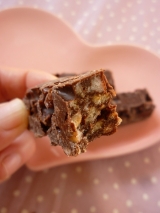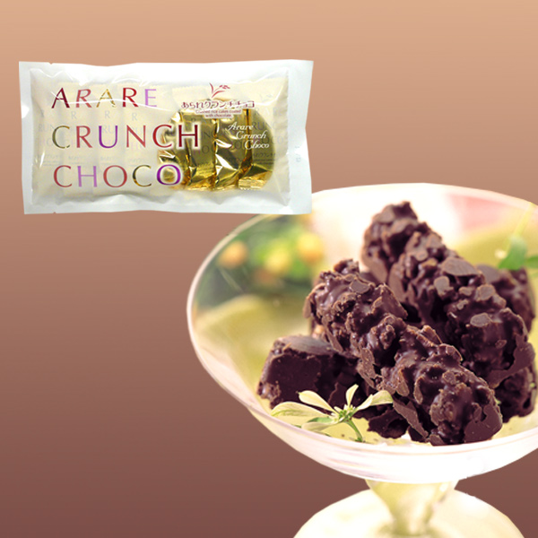 砕いたおせんべいとチョコレートが軽やかにまざりあってカリッとした食感が楽しいクランチチョコレートです。