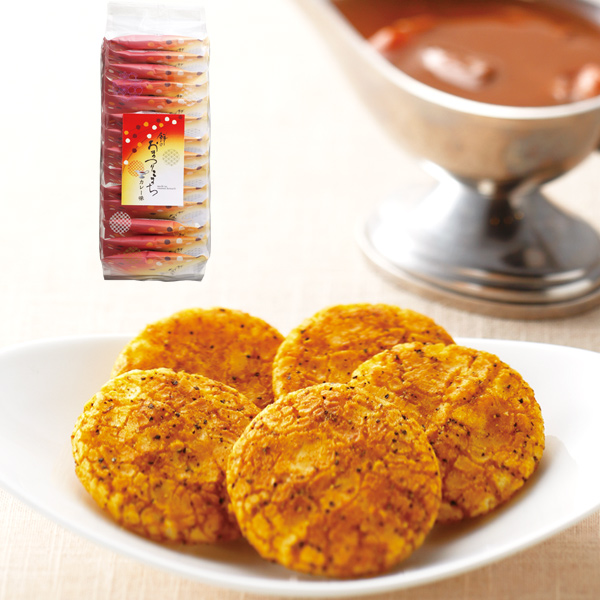 スパイシーな食べやすいミニサイズのおせんべい「おまつりこまち カレー味」