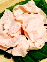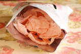 お煎餅屋さんの もち吉さんより、こりゃいける えび味のお届けものがありました^^国産のお米で作った新食感のお米チップスサックサクの軽い食感と桜えび風味が人気の商品です、とのことです!袋が結構大きくて、結構「引き」で写真撮りましたえびせん美味しいよねぇぇえええ早速食べよう!思った以上にピンク色が… 2015/03/01