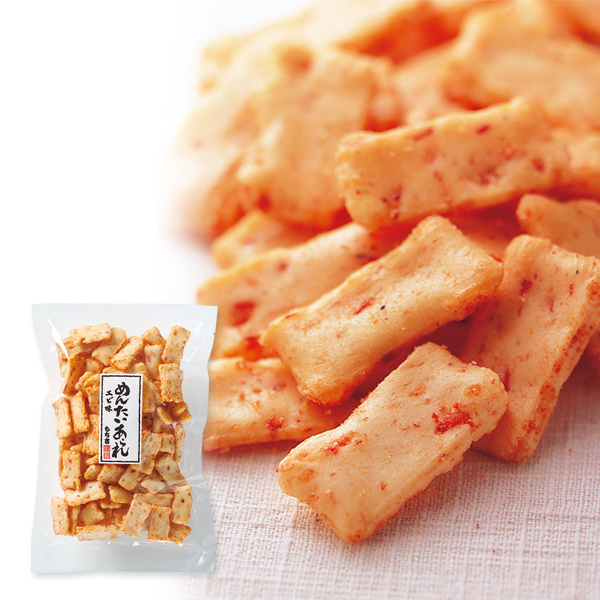 ピリ辛の明太子の旨みと海老の風味が両方楽しめるあられ『めんたいあられ えび味』をお楽しみください。