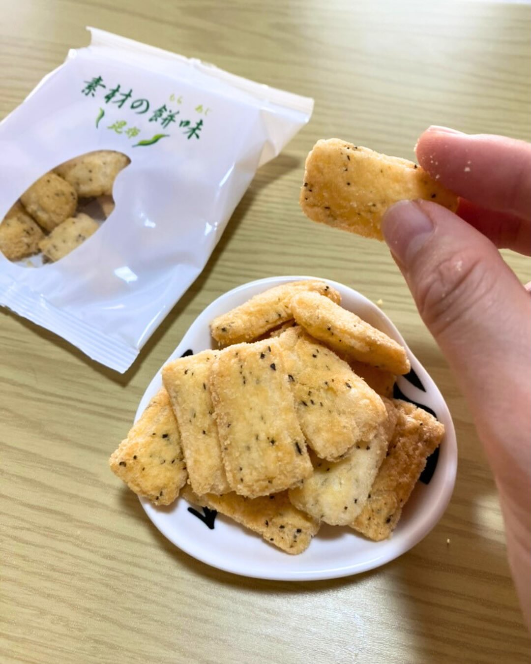 さっそく食べてみます。ザクッとあげあられならではの心地よい食感、追いかけてくるもち米の香り。塩味が強すぎず、昆布の旨みと調和して手が止まらなくなります。