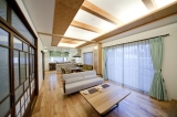 また、一般の木造住宅では困難なビルトインガレージや吹き抜けが可能な上、インフィル(仕切り壁、設備、内装など)とスケルトン(構造、基礎、外壁、屋根など)に分けらえるので、ライフスタイルの変化に応じて住空間が変えられ、長期間に渡って住み継ぐことが可能です。