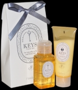KEYS(キーズ)トラベルセット 一定した水分量をキープする植物由来のトレハロース誘導体 トルナーレ(R)という成分を配合してたヘアケアです トラベルキットなんですけど、ボトルも高級感があって、 色もオレンジで可愛くて、プレゼントみたいで素敵 KEYSという言葉は「希望のヘアスタイルへの扉を開く… 2012/01/18