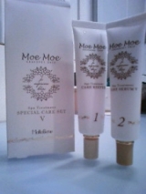 ここんとこずっと寝たっきりで、 髪が枕と擦れてさらにダメージがひどくなったので 昨日は久々に髪のためにスペシャルケアをしました おうちで出来るホームケア用集中トリートメント 『モエモエ スペシャルケアセット』 こちらは2ステップのトリートメントで、 乾燥を防いで、 潤い… 2012/04/20