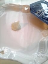 <step4>軽く水気をきり、モンゴ流コンディショナーEXを適量を手にとって、えり足や毛先を重点的につけ、頭頂部には軽くなじませてください。