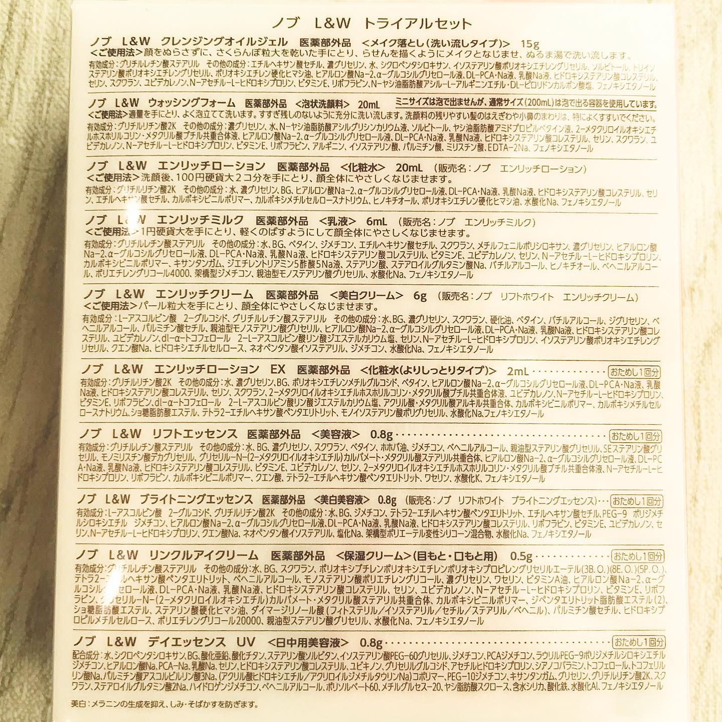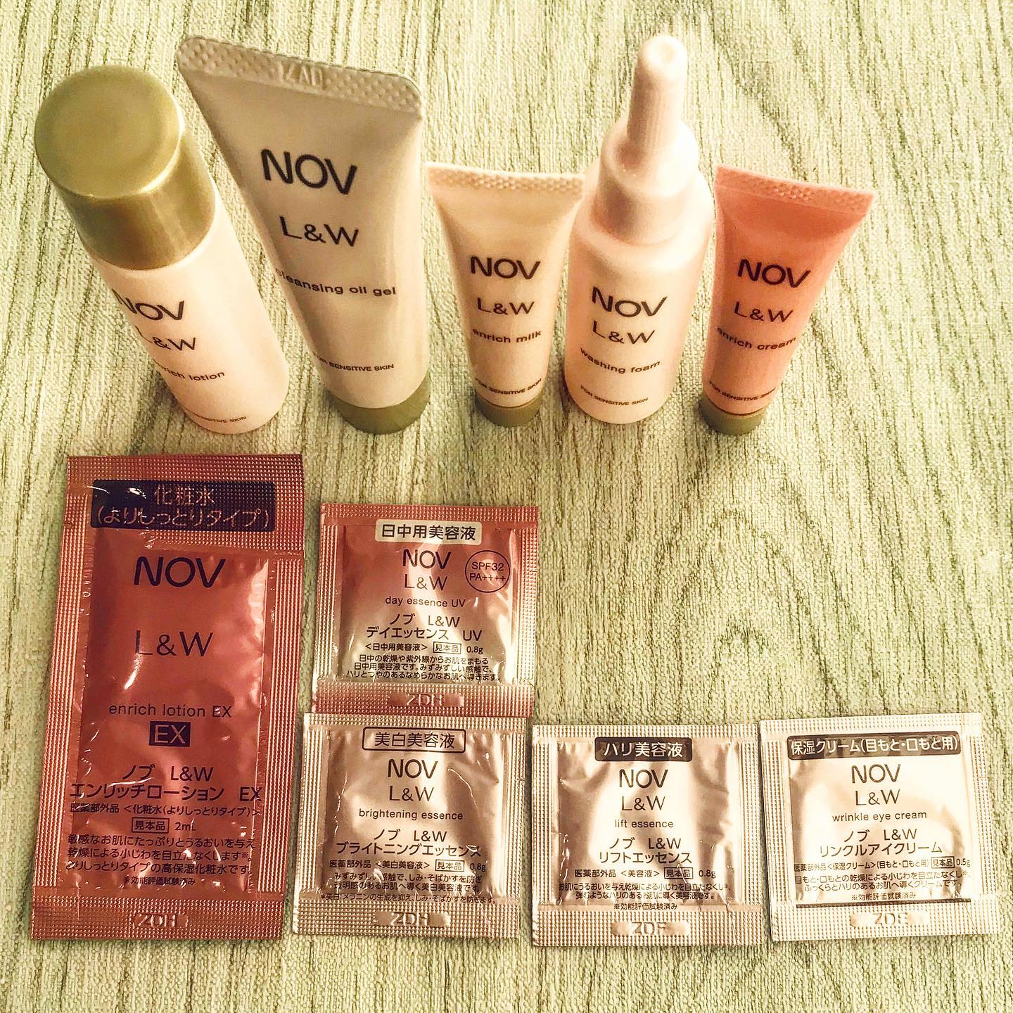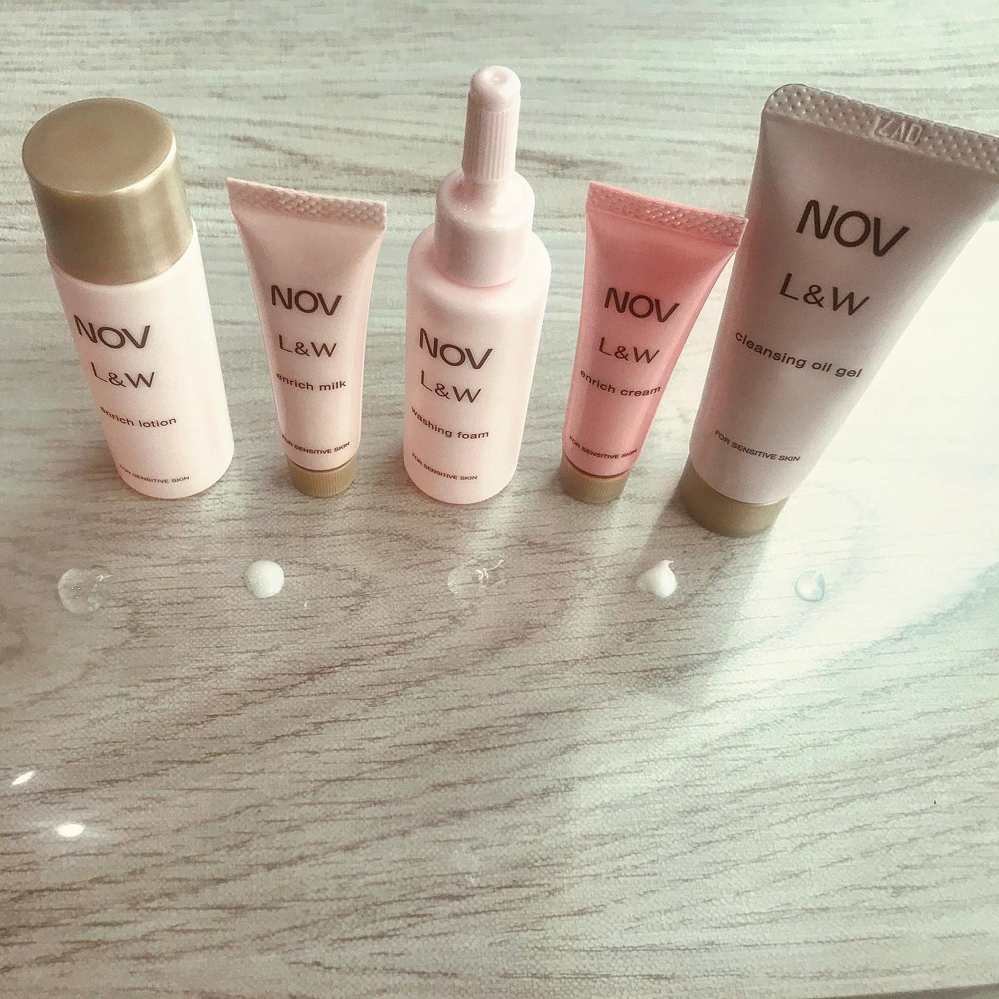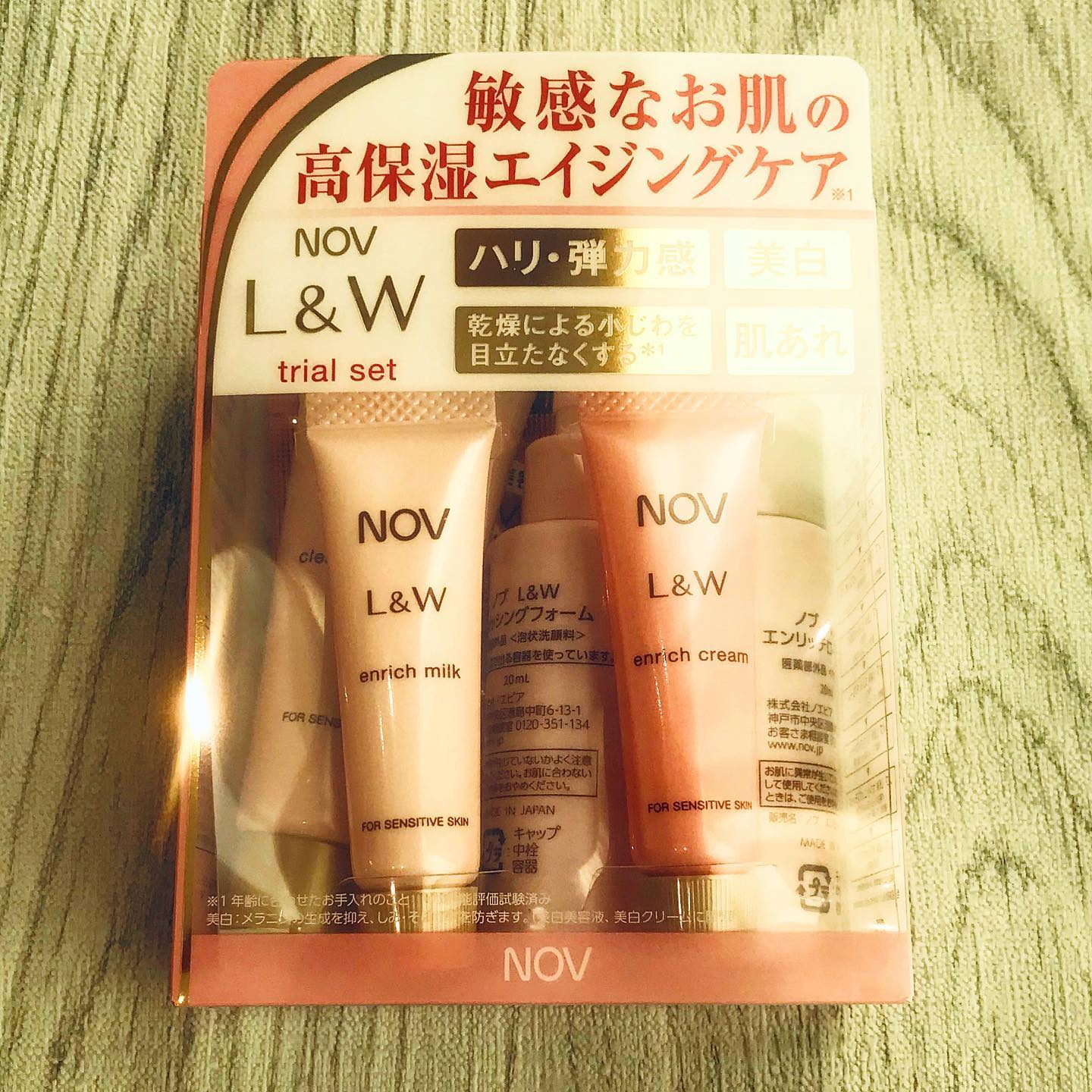 #モニプラ 様を通じて、 #常盤薬品工業株式会社 様の #NOV #ノブ #L&W #トライアルセット をお試しさせていただきました💎 . . 敏感肌でもエイジングケアでき、高保湿なのが嬉しいです✨ . . クレンジングオイルジェル、ウォッシングフォーム、エンリッチローション、エンリッチミルク、エンリッチクリーム、エンリッチローションEX🧴 、リフトエッセンス、ブライトニングエッセンス、リンクルアイクリーム、デイエッセンスUV など、たくさん試せるトライアルセットです💎 . . 洗顔料はふわふわの泡で優しく汚れを落とし、 . ローションはとろみがあり、優しく肌を保湿します💎 . . ミルク、クリームが潤した肌の水分をしっかりと閉じ込め、肌がしっとりします✨ . . UVミルクで日中の日焼けも予防し、乾燥、小じわを防いでくれるスキンケアラインです💎 . . L&Wは… . . 敏感なお肌のための高保湿エイジングケア 「ノブ L&Wシリーズ」です💎 . . 刺激を感じやすい敏感なお肌は、乾燥しやすくハリや透明感も失われやすくなっています👩💦 . ノブ L&Wシリーズは、エイジングが気になる大人の敏感肌にうるおいを与え、ハリと透明感のあるお肌へ導く高保湿エイジングケアシリーズです✨ . . トライアルセット内容 . ノブ L&W クレンジングオイルジェル(15g) ノブ L&W ウォッシングフォーム(20mL) ノブ L&W エンリッチローション(20mL) ノブ L&W エンリッチミルク(6mL) ノブ L&W エンリッチクリーム(6g) ノブ L&W エンリッチローション EX(2mL×1個) ノブ L&W リフトエッセンス(0.8g×1個) ノブ L&W ブライトニングエッセンス(0.8g×1個) ノブ L&W リンクルアイクリーム(0.5g×1個) ノブ L&W デイエッセンス UV(0.8g×1個) . . シミ、シワ、ハリのなさなど、肌の気になるエイジングサインをトータルケアできる、 大人の敏感肌のための高保湿エイジングケア商品です💎 . . 秋冬の乾燥肌にもぴったりです🍁❄️ #nov #ノブ #novlandw #低刺激性スキンケアnov #エイジングケア #敏感肌 #トライアルセット #常盤薬品 #monipla #moniplacosme_fan