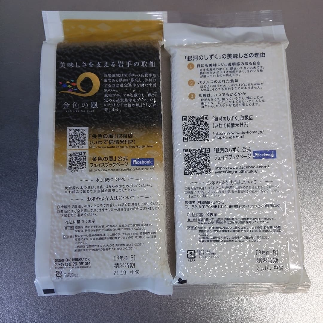岩手県産のブランド米「金色の風」「銀河のしずく」♥️ お米って毎日食べるから色々な種類のお米が食べたくなりますよね。 気軽に味わえる、300gの真空パックのセット😆 「金色の風」は、岩手県が独自開発した革新的技術で10年かけてたどり着いたおいしさ♥️ 「銀河のしずく」は、3年連続「特A」を獲得しており、透明感のあるきれいな粒とかろやかな食感が特徴の岩手県オリジナル品種★ どちらもはじめて食べましたが美味しい🤤 パッケージも可愛いくて魅力的です♥️ #いわて純情米 #金色の風 #銀河のしずく #monipla #moniplafood_fan