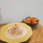 昨日の#よるごはん は、lasaisonで購入したスタジオMの食器を使いたかったので、#パスタ に。 さらに、寒かったので「#ツナとたらこのパスタ 」にした♪ #モンマルシェ の#オーシャンプリンセスホワイトツナ その中の#エキストラバージンオリーブオイルオイル に漬けたツナは、パスタとの相性抜群🎵 #ソリッドタイプ なので、クリームに混ぜるほかにも、盛り付けたパスタの上にちょこんとトッピングもサマになる😊 ーーー 一昨日作った#国産にんにく入りツナ は、にんにくの用意をしなくてもいいからとても便利! 「#ごぼうとツナの醤油炒め 」 にんにくが、食欲増進! 甘辛い味付けで、ご飯も進む♪ #高級ツナ缶バラエティーセット は、どれをどんな料理に組み合わせるのか考えるのが楽しい😆🎵 2018/10/01