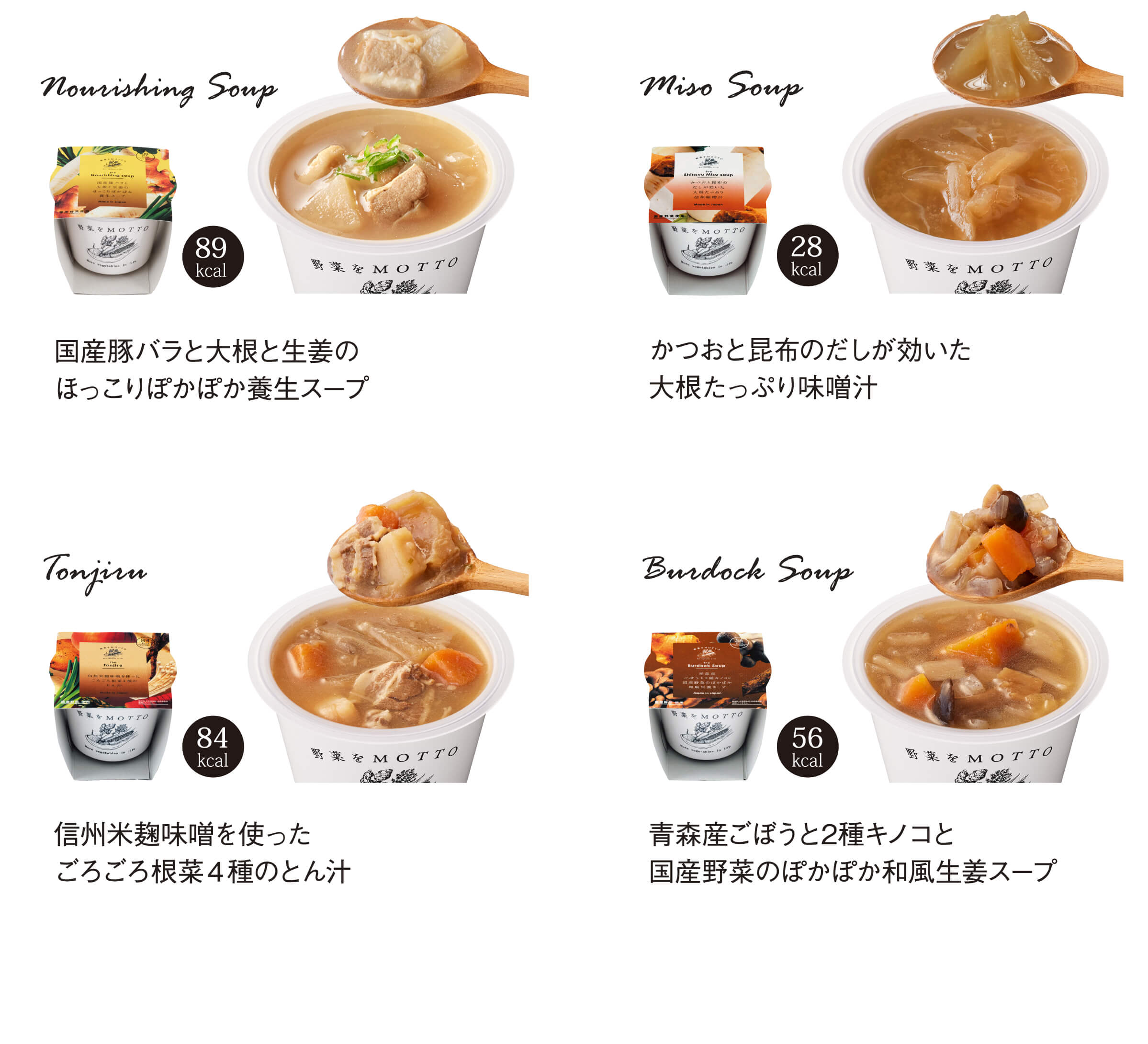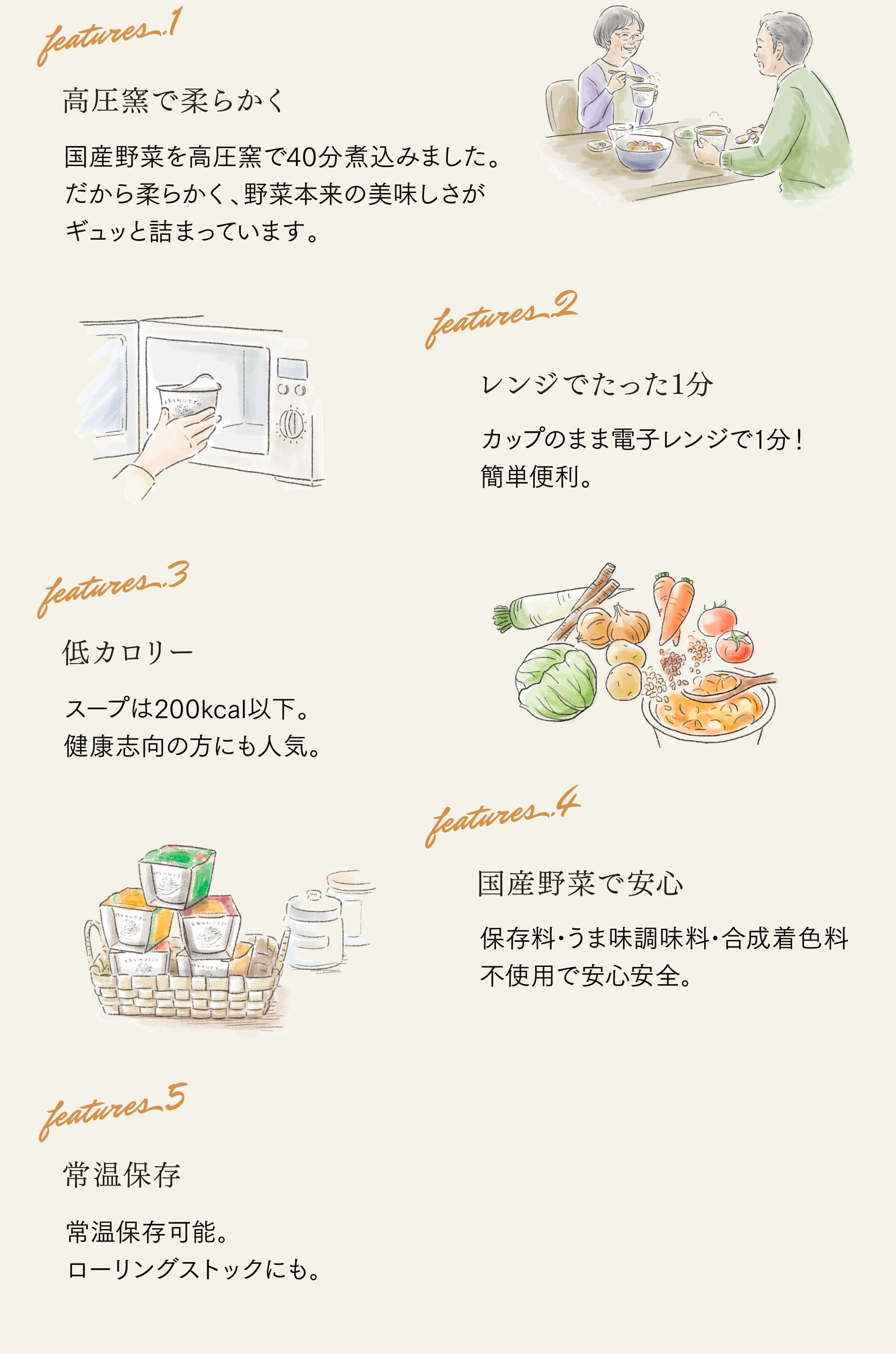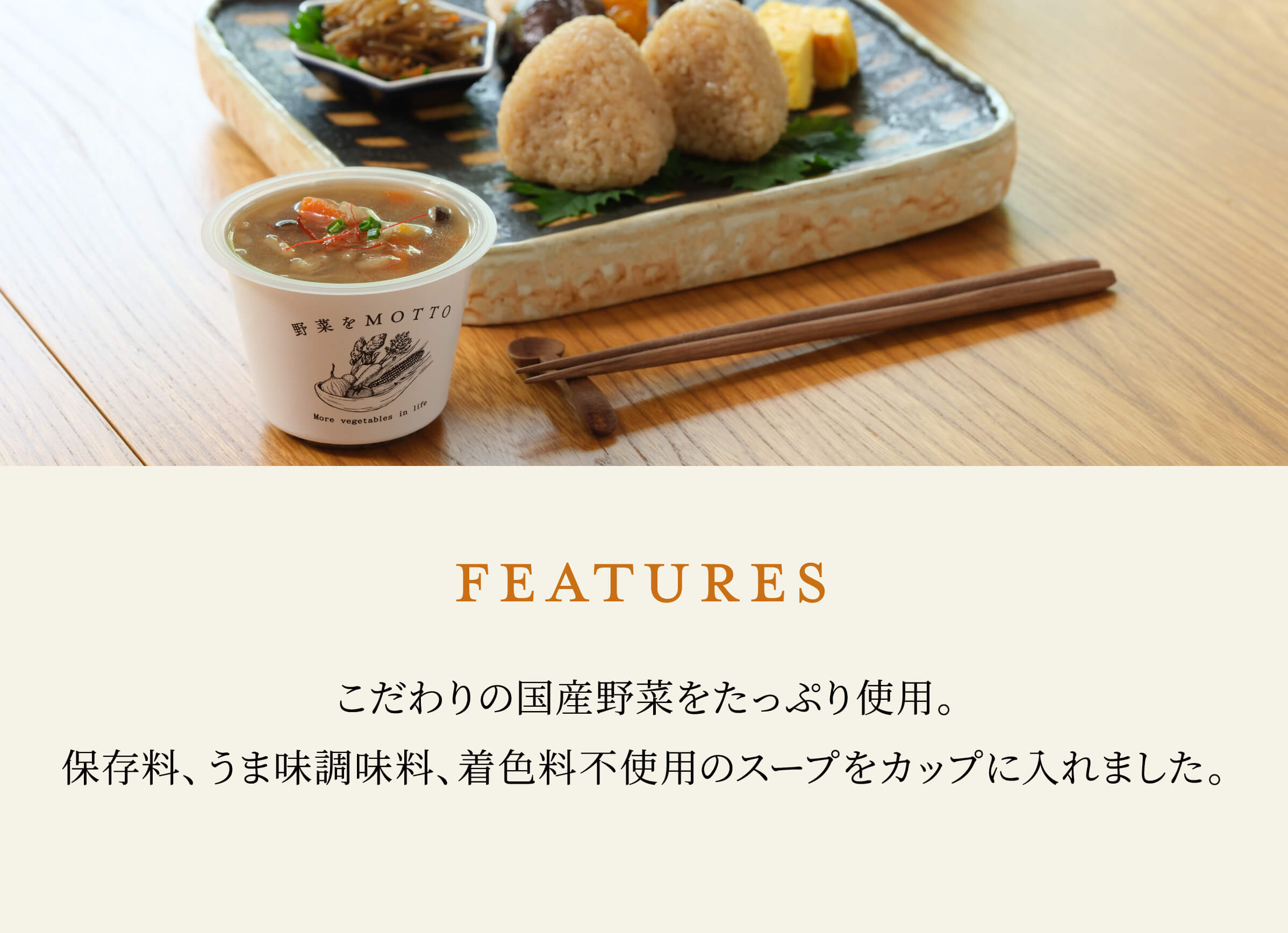 2016年に発売したレンジカップスープでは、野菜そのものを食べて欲しいという思いから、具の大きさを実現するため、レンジカップとして発売。