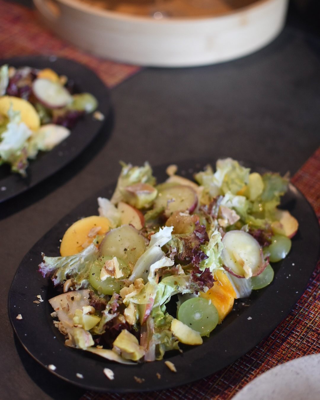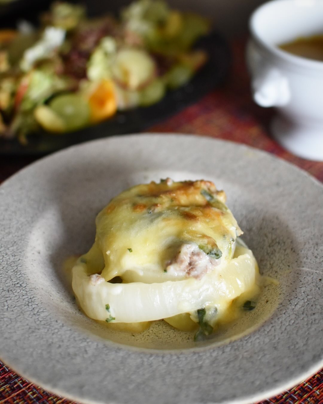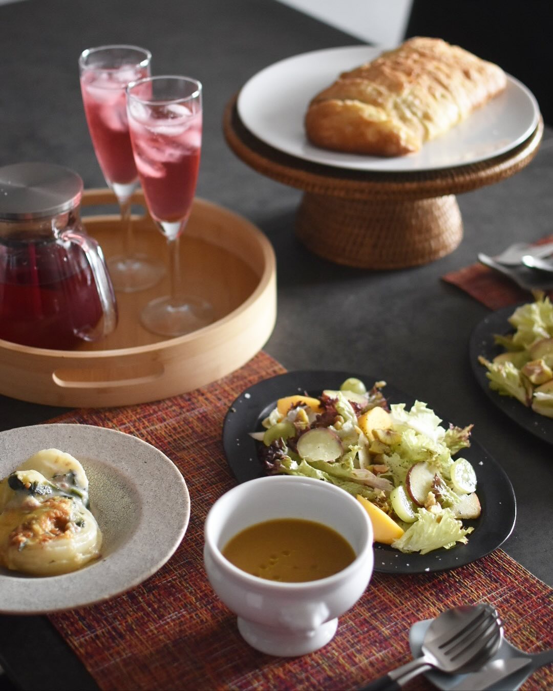 友人が来てくれた時のお家ランチ𓌉◯𓇋 ◉秋果物と栗のサラダ ◉スープペイザンヌ ◉フォカッチャ ◉玉葱のグラタン ほうれん草のホワイトソース サラダは、最近伺っている“果物料理のレストラン”をちょっと意識して🤭♥ リーフに柿、マスカット、林檎に栗とさつま芋、胡桃、バルサミコとオリーブオイルでシンプルに◎ スープは、『365日』の杉窪シェフの本より🧑🍳 5-6種類のお野菜をじっくり蒸し煮にしてミキサーに。乳製品使っていないとは思えない美味しさで気に入っているレシピです𓐐 #おうちごはん #lunch #おもてなし #おうちランチ #おもてなしランチ #友人との時間 #リフレッシュ #PR #野菜をMOTTO #野菜スープ #カップスープ #クリスマスギフト #monipla #monmarche_fan
