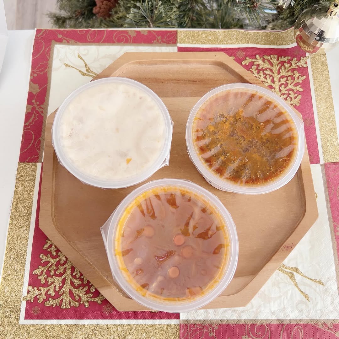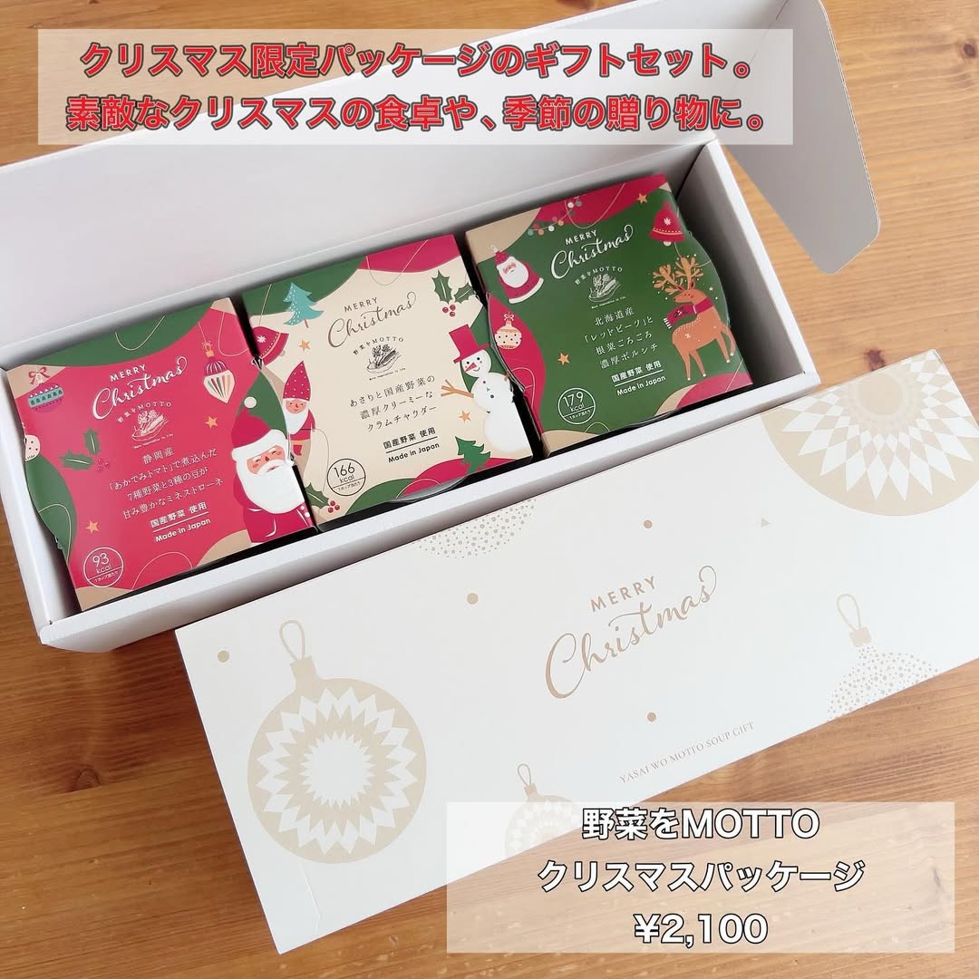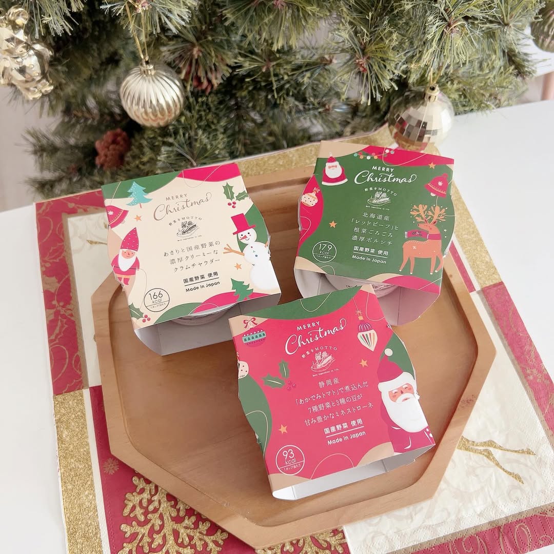 野菜をMOTTO クリスマス限定 スープ 3個ギフトセットを体験したよ! カップのままレンジで1分 国産野菜の贅沢スープを楽しめるレンジカップスープ❤️ 人気のスープが3種類入ったクリスマス限定のラッピングギフトだよ🎄 パッケージはもちろん入ってるボックスまでも素敵👏 ・ミネストローネ ・ボルシチ ・クラムチャウダー 国産野菜をたくさん使ってるから栄養たっぷり! しかも、保存料、うま味調味料、着色料不使用なの。 カロリーはどれも200kcal以下なのに満足感があったよ😆 レンジでたった1分で出来上がるから、 職場にも持っていけたし、一人の日の朝昼ご飯に最適✨ 特に私のお気に入りは、クラムチャウダー❤️ パンにつけて食べると最高😆 アサリがたっぷり入ってて、クリーミーで美味しかった😍 ボルシチは濃厚で、野菜が大きい! パンと食べたけどご飯のおかずに絶対あうやつ!ハヤシライスみたいな風味。 ミネストローネは、 野菜とお豆がゴロゴロ入っててカロリーも 1番低いのが嬉しかったなぁ😘 こちらのセットは税込2,100円。 ギフトでいただいたら喜ばれる事間違いなし👍🎄 #PR #野菜をMOTTO #クリスマス #クリスマスギフト #野菜スープ #野菜をMOTTOクリスマスギフト #monipla #monmarche_fan