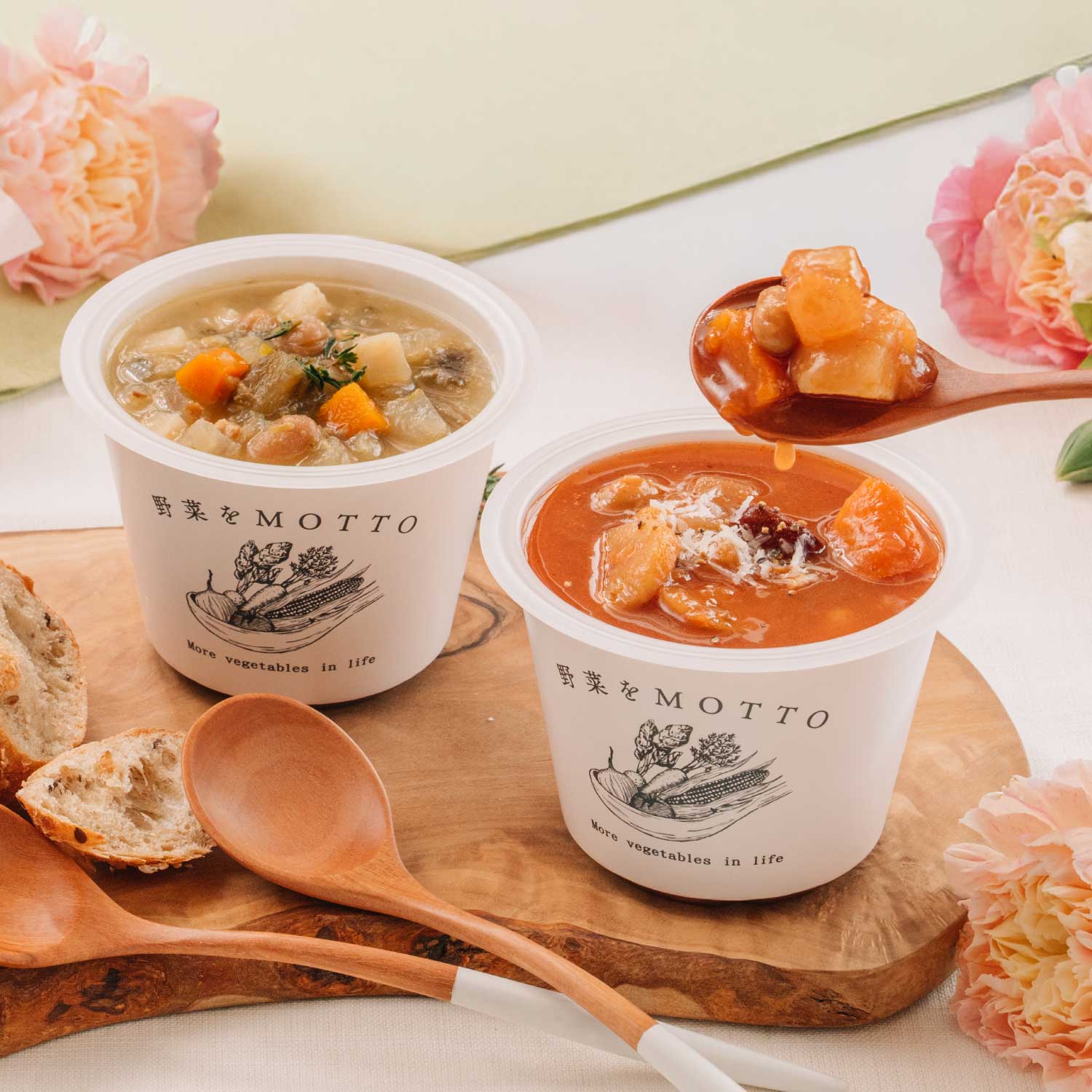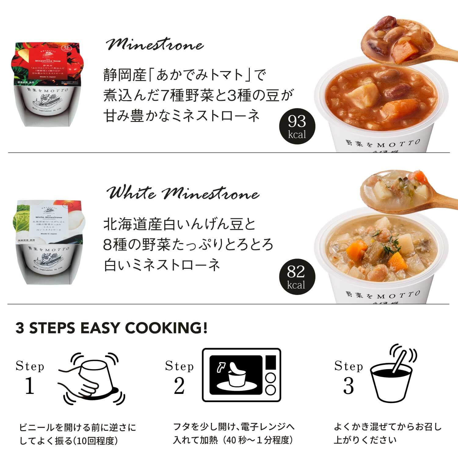今回は、赤白ミネストローネの食べ比べセットです。