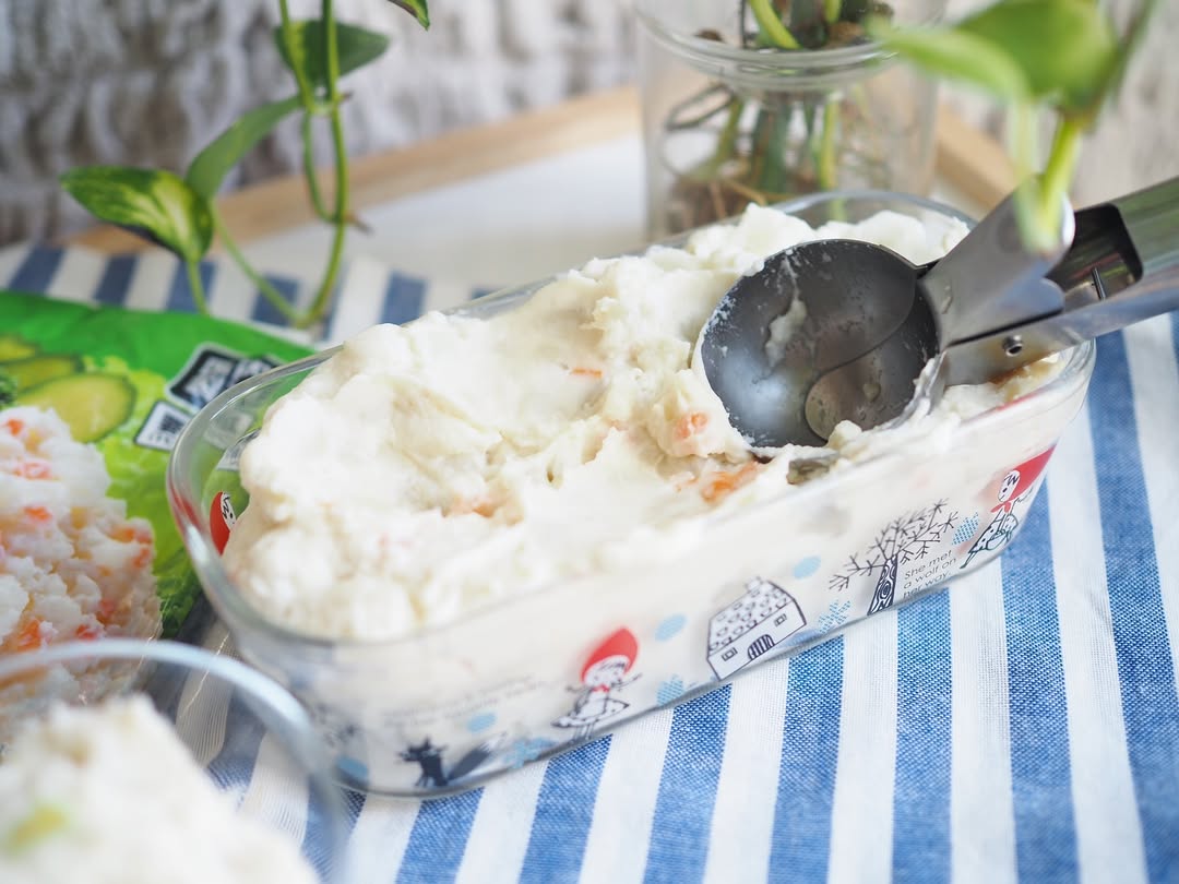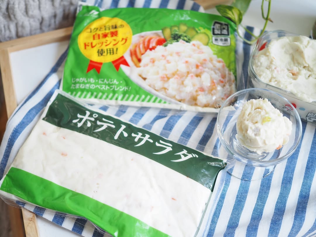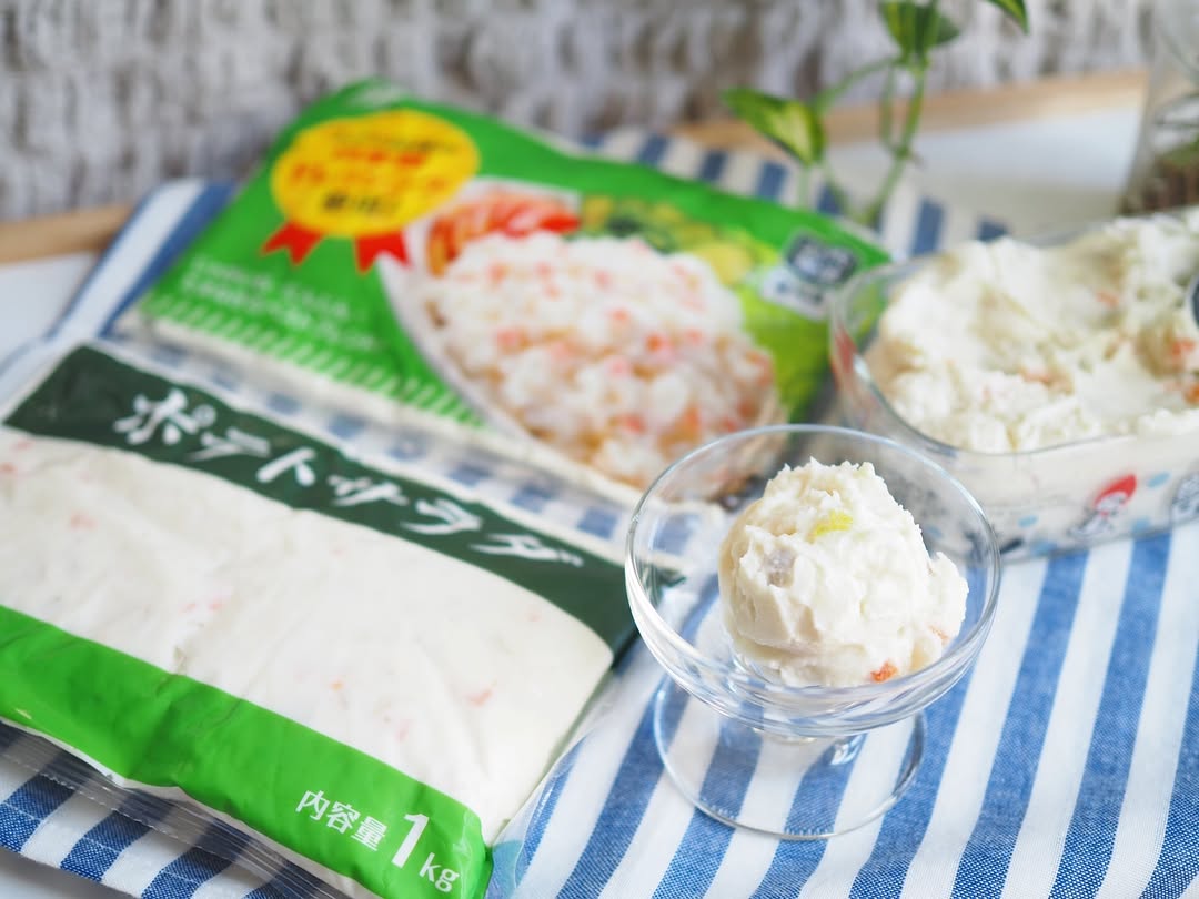 #業務スーパー の#総力祭 セールで398円から358円になっている、#ポテトサラダ 。 500gずつの分割2連パックで1kgの使いやすい大容量サイズで、もう数え切れないほどリピしてます☺️ ポテトのほくほく感があってそのままおかずの1品にはもちろん、トーストにのせてポテサラトーストにしてもボリューミーでおいしいですよ🍞 気になる方は#業スー でチェックしてみてくださいね。 #PR #野菜をMOTTO #野菜をもっと #野菜スープ #ミネストローネ #食べ比べ #monipla #monmarche_fan